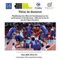 Le volleyball est un sport collectif caractérisé notamment par une répétition de sauts de hautes intensités. Ces sauts verticaux répétés entraînent des dommages sur l'appareil locomoteur, réduisant la possibilité d’expression des performances physiques, techniques et collectives, et augmentant le risque de blessures. Globalement, la performance en volleyball peut être classifiée en trois catégories : performance physique, performance technique et performance collective. Cependant, dans cette thèse, nous concentrons spécifiquement sur la performance physique de saut. Pour étudier les effets de l'entraînement sur les performances de saut et les blessures en volleyball, la littérature se concentre essentiellement sur les charges d'entraînement externes, telles que le nombre et la hauteur des sauts. Cependant, l'évolution des performances de saut, ainsi que l'apparition des blessures sont des phénomènes complexes nécessitant l'analyse de plusieurs variables telles que les charges d’entraînement réalisées dans les différents registres d’intensité, la qualité de récupération, le sommeil, le poste occupé au sein de l’équipe, les cycles menstruels, etc. Pour étudier les effets de l'entraînement sur les performances de saut et les blessures, des modèles d'intelligence artificielle, comme le machine learning, sont couramment utilisés.
